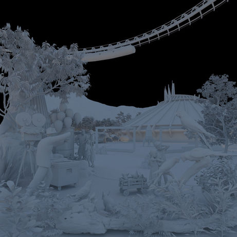 Process of experimentation filling out the scene & overall progress. Working out kinks that allow for the space to breath and create a stronger composition.